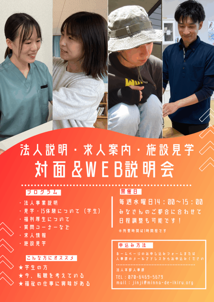 【法人説明・求人案内・施設見学】ご希望に応じて随時開催中!(一般・学生OK/対面・WEB対応)